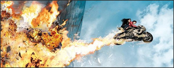 A partir de ahí, y sin darse cuenta, sigue con su día laboral escoltando a una cantante que, al ponerse el casco de seguridad, activa una bomba con un contador de tiempo en su maldita cabeza. Con ello no se hace esperar el llamado de un misterioso malandra que explica que ambos deben realizar todas las entregas restantes del día o el casco en cuestión llegará a cero y explotará. Con esa locura de ridícula premisa base, se inicia una carrera en donde la policía perseguirá al dúo de forma incansable, mientras cada entrega termina siendo un aparato explosivo que siembra la destrucción en la ciudad. Permítanme ponerme de pie y aplaudir.