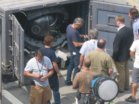 Comic Book Movie is tying this prop into the one we saw during Bane’s speech at Heinz Field, a big shiny metal thing rolled up behind him during his big speech. But to me, they don’t look alike at all. Take a look at the video below to see what I mean. So how do we know this is Bane’s doomsday device, or anything related to Bane at all? We don’t– like every other set photo or video gleaned from The Dark Knight Rises, we’re all just piecing things together based on our own conjecture, as the team actually making the movie refuses to tell us anything. At least given the size and elaborate design of the device, we can assume it’s not just some random background prop– whatever this diving bell-looking thing is, it’s probably going to play a major role in The Dark Knight Rises when we finally see it next summer. Share |