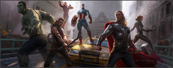 esta imagen conceptual es muy superior a cualquier afiche que exista para la película de «Avengers», hubiera preferido mil veces ver este dibujo a las imágenes trucadas con paint que se a pegado el depto. de Marketing de Marvel.