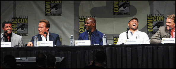 Con Sylvester Stallone, Arnold Schwarzenegger, Dolph Lundgren, Terry Crews y Randy Couture en el escenario, se desarrolló el panel de presentación de The Expendables 2 en la Comic-Con de San Diego. Una reunión marcada por la nostalgia, las flores que se tiraron entre las leyendas de la acción ochentera y lo que es descrito como un clip explosivo en un aeropuerto que anticipa el nivel de acción de una película que de por si buscará sacar partido a su mayor fortaleza: la presencia de verdaderos íconos del cine.