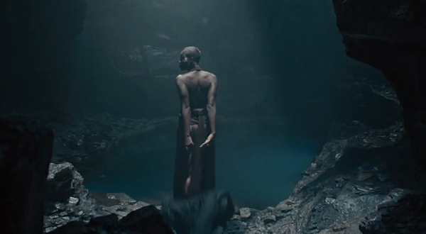 Debe ser que Thor llega a donde esta ella. Recordemos que en el trailer anterior se veia a Thor sin camisa saliendo de un poso o lago que se parece a ese :3
